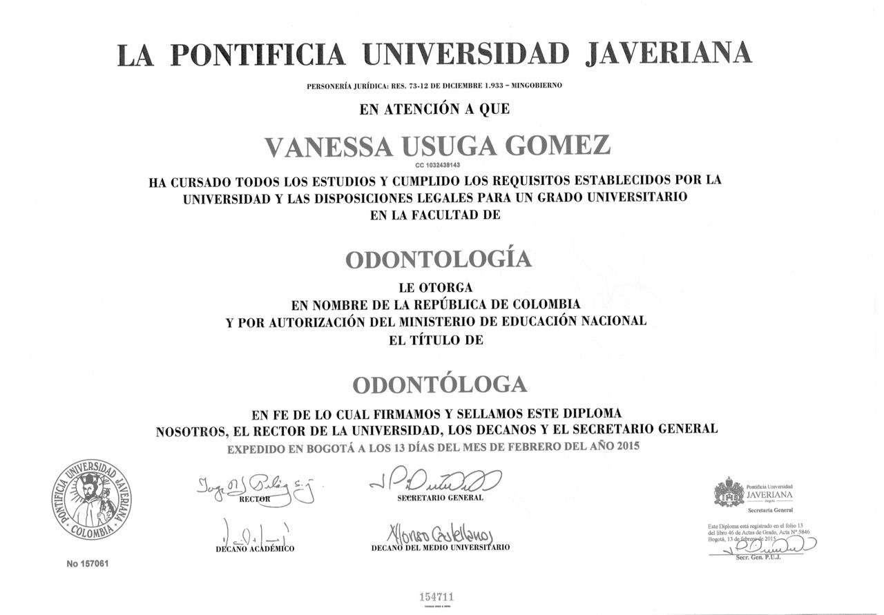 Soy odontóloga egresada de la Pontificia Universidad Javeriana de Bogotá. Mi prioridad es la salud y el bienestar de cada paciente, siempre con ética profesional y un trato cercano. Creo en la belleza natural, por eso diseño sonrisas que resaltan la esencia de cada persona, con un enfoque honesto y personalizado. Cuento con un gran equipo de trabajo y manejamos todas las especialidades odontológicas, lo que nos permite ofrecer un servicio integral y de alta calidad. Más que un tratamiento, buscamos brindarte confianza y seguridad al sonreír.